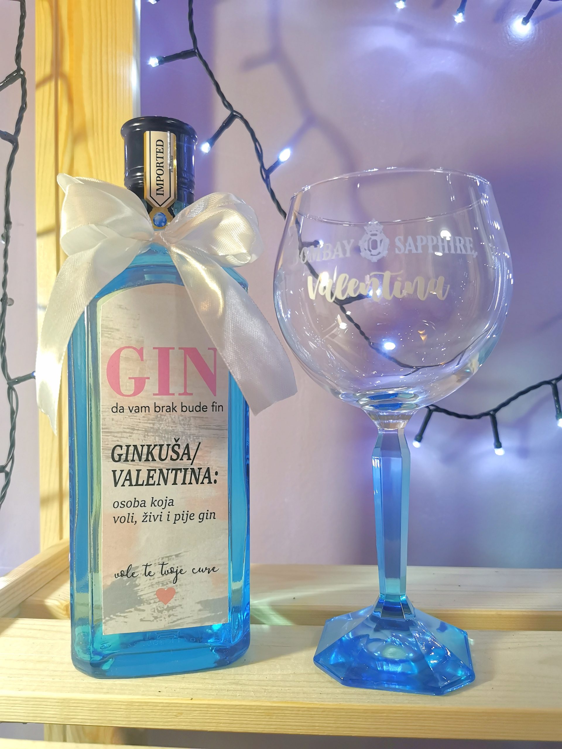 dizajn deklaracije se prilagođava boji mašne koju ste odabrali – ime za čašu također